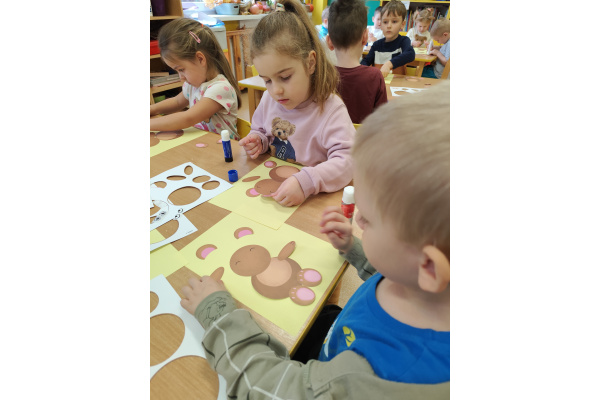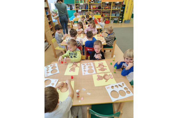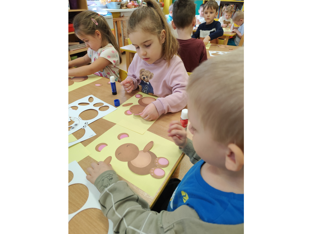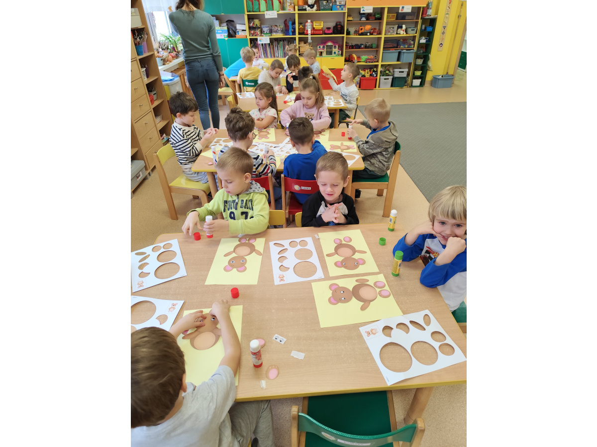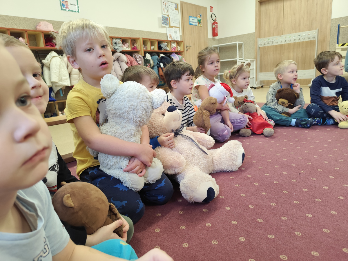 Grupa Sowy aktywnie uczestniczyła w obchodach Dnia Pluszowego Misia, które miały miejsce w przedszkolu. Dzieci z grupy Sowy przygotowały się do tego wydarzenia poprzez wspólne rozmowy o ich ulubionych pluszowych misiach, opowiadanie historyjek i naukę piosenek związanych z misiami. W dniu imprezy Sowy przybyły do przedszkola z ulubionymi pluszowymi misiami, które przyniosły ze sobą z domu. Podczas obchodów dzieci brały udział w różnorodnych atrakcjach – m.in. tworzeniu prac plastycznych inspirowanych misiami. To wydarzenie pozwoliło dzieciom rozwijać wyobraźnię, integrację i radość z wspólnego świętowania.