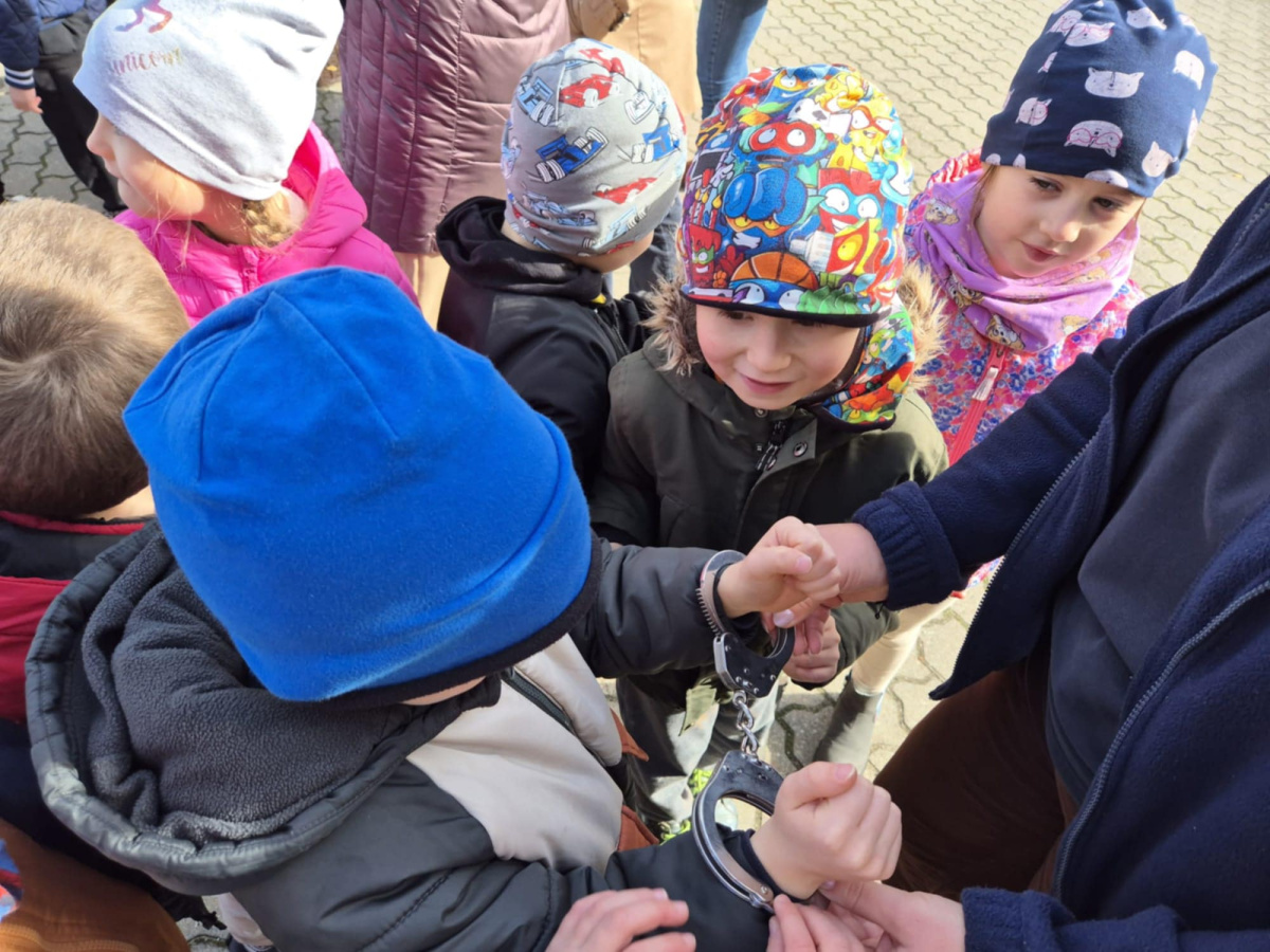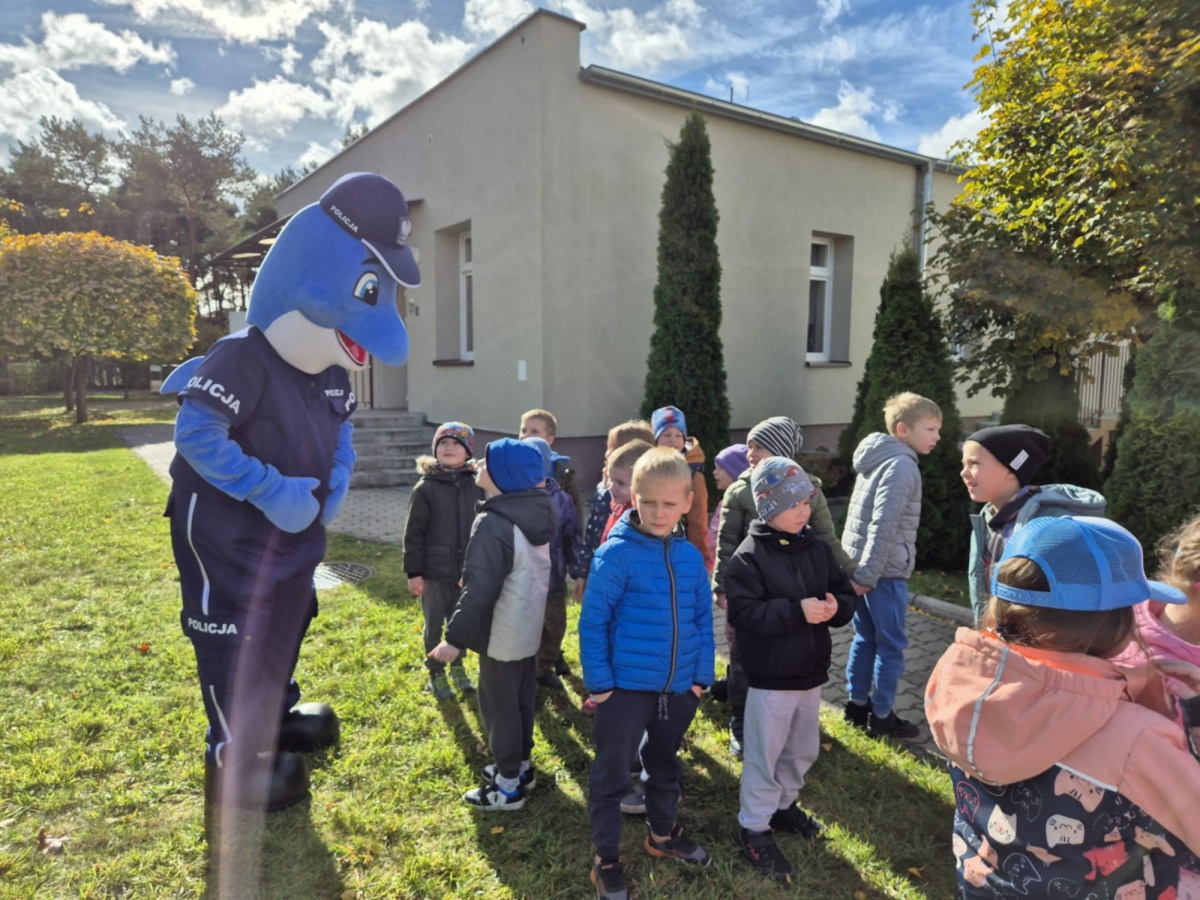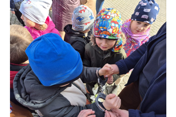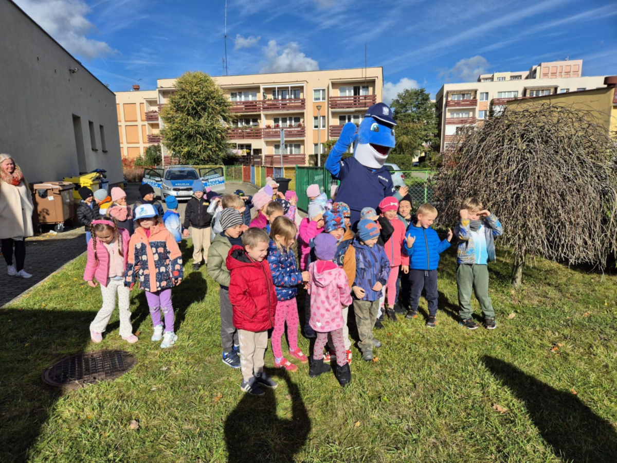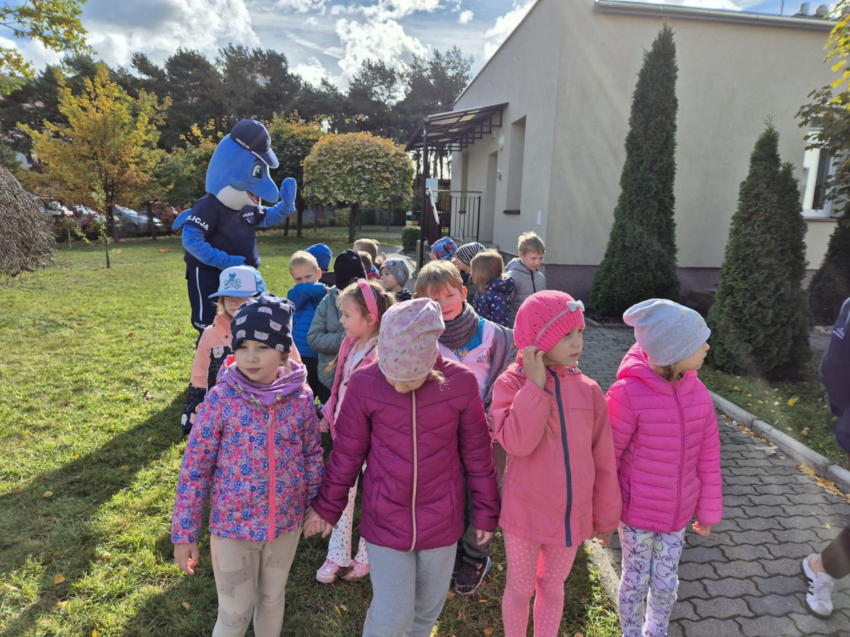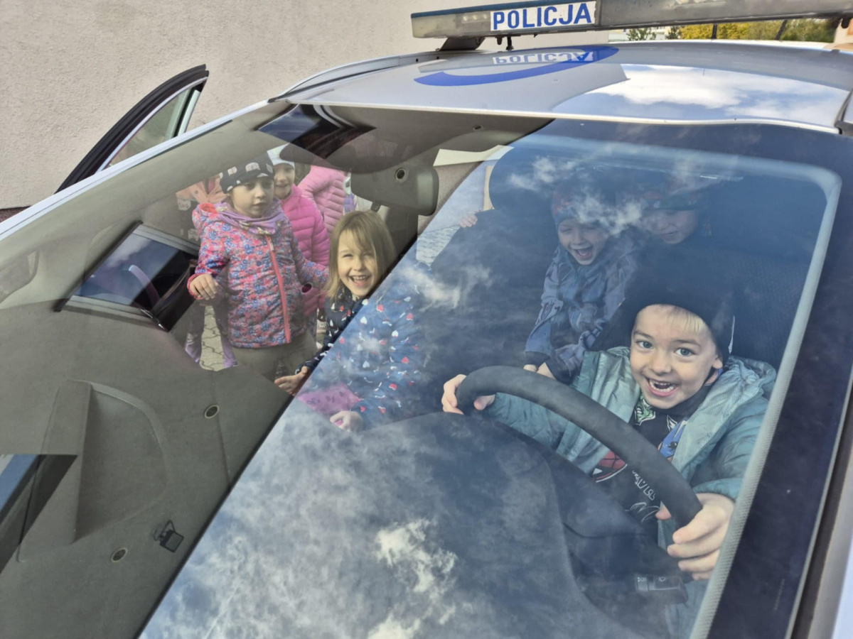 Dzięki uprzejmości Komisariatu Policji w Bydgoszczy - oddział Fordon, Jagódki miały okazję spotkać się z funkcjonariuszami, poznać ich pracę oraz posiedzieć w radiowozie policyjnym. Przedszkole odwiedziła również maskotka Polfinek, z którą dzieci wyśmienicie się bawiły utrwalając sobie podstawowe zasady kodeksu drogowego.
